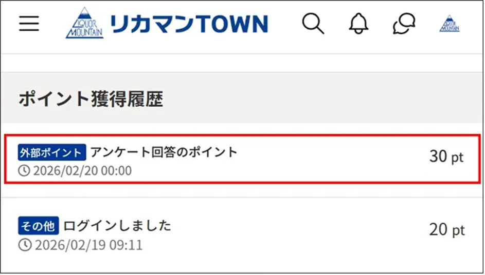 アンケート回答によるポイント付与の確認はマイページよりご確認いただけます。